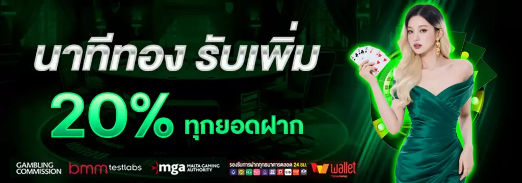 รับโบนัส 20% สูงสุด 1,000 บาท ( โปรโมชั่นนี้จำเป็นจะต้องฝากขั้นตํ่า 100 เท่านั้น)