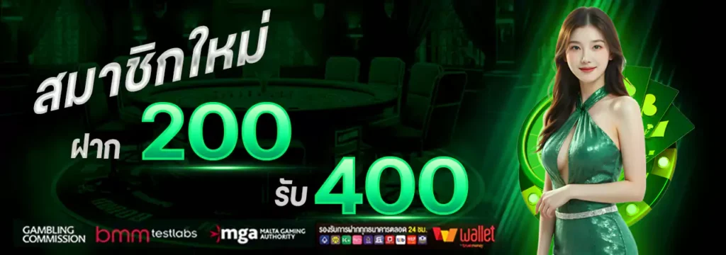 สมาชิกใหม่ ฝาก 200 รับโบนัส 400